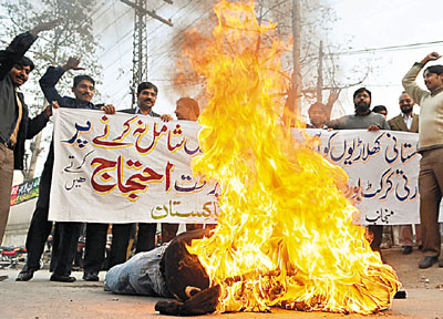 巴基斯坦民眾燒假人抗議