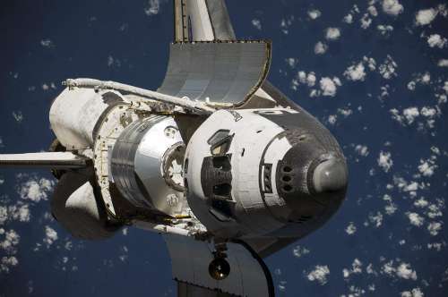 美國“發(fā)現(xiàn)”號(hào)航天飛機(jī)在太空中的英姿。(資料圖片)