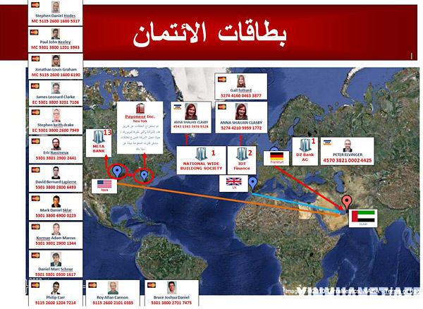 這張2月24日阿聯(lián)酋迪拜警方公布的照片顯示的是暗殺馬巴胡赫的嫌疑人信用卡使用線路圖。迪拜警方24日發(fā)表聲明說,涉嫌暗殺巴勒斯坦伊斯蘭抵抗運(yùn)動(哈馬斯)領(lǐng)導(dǎo)人馬哈茂德·馬巴胡赫的嫌疑人數(shù)已升至28人,其中包括先前落網(wǎng)的被關(guān)押在迪拜的2名巴勒斯坦人。新華社/法新