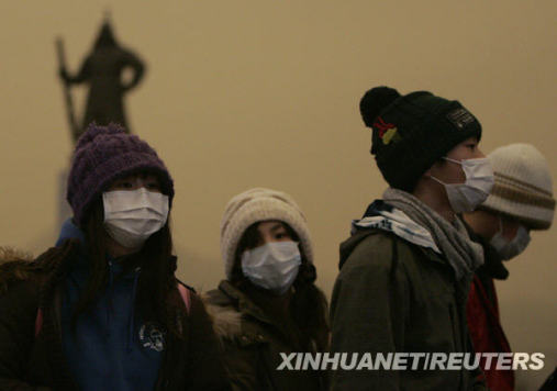 對于3月20日席卷韓國全境的沙塵暴天氣,韓國氣象部門稱,此次風(fēng)沙天氣是該國自2005年開始利用儀器觀測沙塵濃度以來最嚴重的一次,并發(fā)布了沙塵暴黃色預(yù)警。韓國的部分媒體還使用了“超級沙塵”的字眼來形容此次沙塵天氣。韓國氣象部門表示,每年冬春之交的時節(jié)是沙塵天氣多發(fā)季節(jié),此次沙塵暴的來襲雖比此前的預(yù)測提前了10天左右,但是估計今年3到5月份韓國沙塵天氣發(fā)生的頻度將會與往年差不多。據(jù)韓國氣象部門監(jiān)測資料顯示,全羅南道新安郡黑山島的空氣中懸浮微粒濃度每立方米高達2712微克,超過了2006年4月8日在白翎島出現(xiàn)的最高紀錄——2371微克。由于沙塵濃度太高,韓國民眾20日的出行大幅減少,出行的人也都戴上口罩。韓國氣象部門表示,隨著中國、蒙古等地的天氣逐漸變干燥,沙塵暴的頂峰期將持續(xù)到下月。