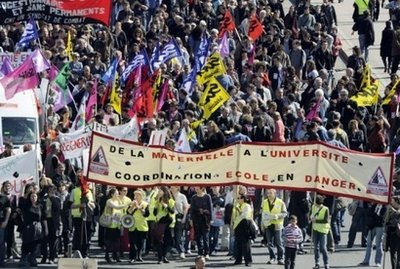 據(jù)香港《大公報(bào)》援引外電報(bào)道,法國(guó)的鐵路工人、教師及公務(wù)員二十三日舉行全國(guó)罷工,令當(dāng)天的運(yùn)輸、教育等方面的公共服務(wù)受阻。工會(huì)希望他們的行動(dòng)能將總統(tǒng)薩科齊的改革計(jì)劃叫停。