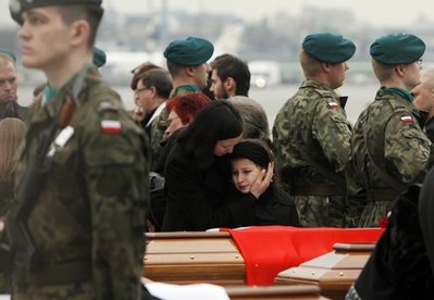 合外電報(bào)道,16日,波蘭總統(tǒng)專機(jī)墜機(jī)事件當(dāng)中的遇難者遺體超過半數(shù)——包括總統(tǒng)卡欽斯基夫婦、波蘭最后一位流亡總統(tǒng)卡丘羅夫斯基在內(nèi)的至少67人的遺體已被運(yùn)回波蘭。到目前為止已有71名遇難者遺體被成功確認(rèn)身份。