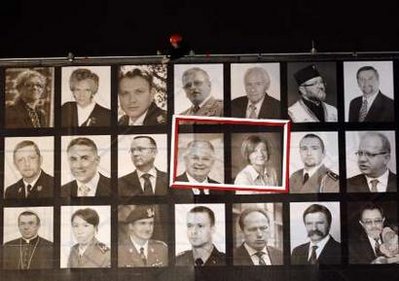在波蘭首都華沙皮蘇特斯基廣場(chǎng),搭建的臺(tái)子展示了所有空難遇難者照片