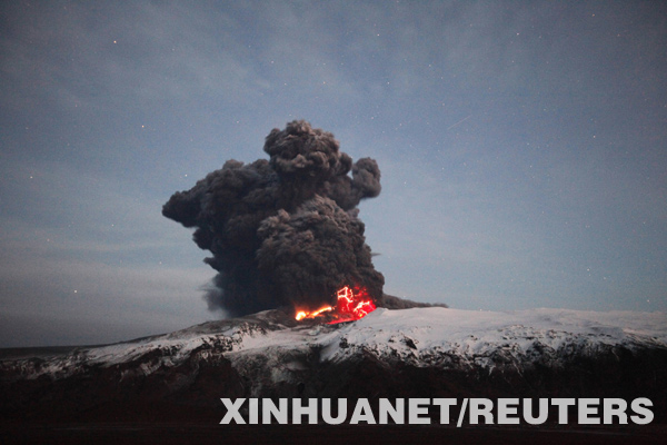 4月17日,冰島埃亞菲亞德拉冰蓋火山持續(xù)噴發(fā)。冰島南部火山日前再次噴發(fā)所產(chǎn)生的大量火山煙塵嚴(yán)重影響了歐洲地區(qū)的空中交通,導(dǎo)致多個(gè)國(guó)家機(jī)場(chǎng)關(guān)閉,大量航班被取消。新華社/路透