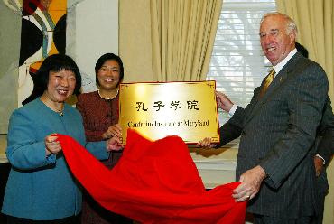 資料圖片:2004年11月17日,中美雙方在馬里蘭大學(xué)簽署共同建設(shè)美國第一所孔子學(xué)院----馬里蘭大學(xué)孔子學(xué)院的協(xié)議。