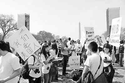 3月21日,大約10萬民眾在華盛頓國家廣場舉行集會(huì)和游行,呼吁奧巴馬政府盡快啟動(dòng)移民改革。來自華盛頓、紐約、芝加哥、亞特蘭大等地的上千名華人參與了集會(huì)。