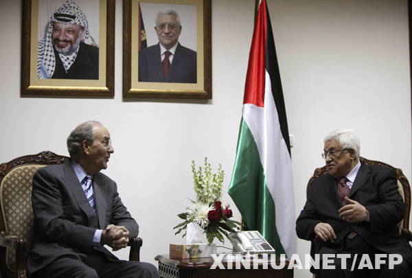 資料圖片:5月7日,巴勒斯坦民族權(quán)力機構(gòu)主席阿巴斯(右)在約旦河西岸城市拉姆安拉與來訪的美國中東問題特使米切爾舉行會談。新華社/法新