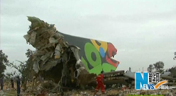 這張利比亞國(guó)家電視臺(tái)5月12日的電視照片顯示,利比亞非洲航空公司的一架客運(yùn)班機(jī)墜毀在黎波里機(jī)場(chǎng)附近。 利比亞非洲航空公司12日說(shuō),當(dāng)天早晨6時(shí)左右,8U771航班班機(jī)由南非約翰內(nèi)斯堡飛抵的黎波里,在試圖降落的過(guò)程中突然墜毀。據(jù)報(bào)道機(jī)上有93名乘客和11名機(jī)組人員。新華社/法新