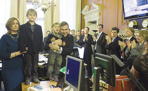 布朗在向工作人員說再見時(shí)真情流露,人人都淚流滿面。但當(dāng)這位自豪的父親抱著兩個(gè)年幼的兒子時(shí),唐寧街10號(hào)的離別氣氛溫情了許多。