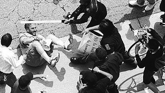 4月17日,美國白人至上主義者在洛杉磯示威游行時,遭群眾討伐