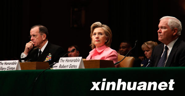 5月18日,美國國務(wù)卿希拉里·克林頓(中)出席參議院外交關(guān)系委員會就新簽訂的美俄核裁軍條約舉行的聽證會。當(dāng)日,希拉里在作證時說,美國、中國和俄羅斯已就制裁伊朗的聯(lián)合國決議草案達(dá)成一致,并將于當(dāng)日在聯(lián)合國安理會散發(fā)該草案。新華社記者王豐豐攝