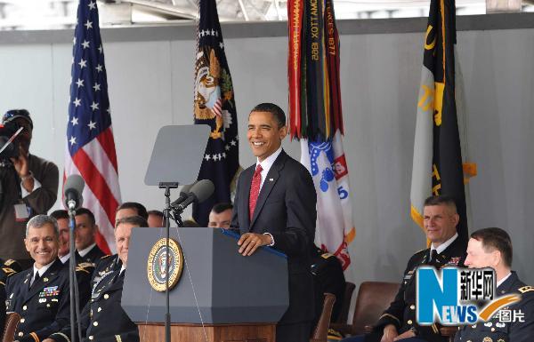 5月22日,在美國(guó)紐約州北部哈德遜河西岸西點(diǎn)鎮(zhèn)的西點(diǎn)軍校,美國(guó)總統(tǒng)奧巴馬(中)出席2010年度畢業(yè)典禮。當(dāng)日,西點(diǎn)軍校舉行2010年度畢業(yè)典禮,1002名學(xué)員獲得理學(xué)學(xué)士學(xué)位,并被授予陸軍少尉軍銜。 新華社記者谷欣容攝