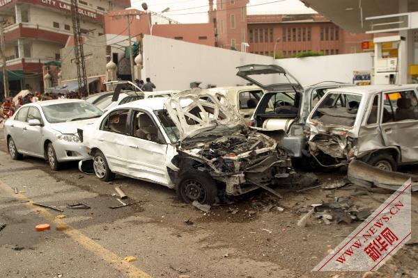 這是2010年5月28日在巴基斯坦東部城市拉合爾拍攝的在襲擊中被損毀的車(chē)輛。 新華社發(fā)(賈米勒·艾哈邁德攝)