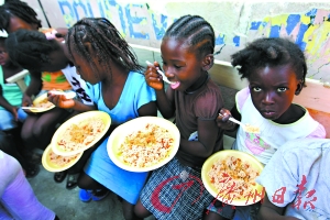 海地地震發(fā)生后,孩子們在一家慈善組織開設(shè)的餐館里免費(fèi)用餐。