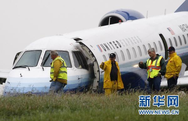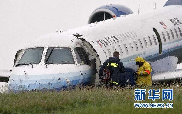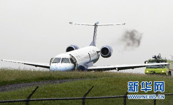 6月16日,工作人員在加拿大渥太華國際機場檢查滑出跑道的美聯(lián)航飛機。機場新聞發(fā)言人當天說,這架由巴西航空工業(yè)公司制造的飛機從美國華盛頓飛抵渥太華時滑出跑道,但沒有造成人員死亡或重傷。 新華社/路透
