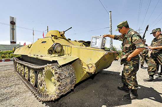 吉爾吉斯斯坦士兵投票,投票箱就放在坦克上。