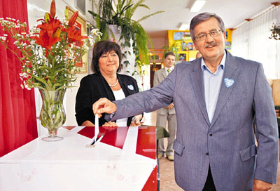 6月20日,波蘭舉行總統(tǒng)選舉首輪投票,共有10位候選人參加總統(tǒng)職位角逐。其中,科莫羅夫斯基的得票率為41.54%,卡欽斯基的得票率為36.46%。波蘭選舉法規(guī)定,首輪投票如果沒有候選人得票過半數(shù),得票數(shù)前兩名的候選人將在兩周后進(jìn)入第二輪角逐。第二輪得票多者當(dāng)選波蘭總統(tǒng)。