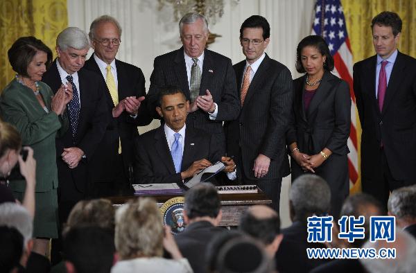 7月1日,在美國(guó)首都華盛頓白宮東廳,美國(guó)總統(tǒng)奧巴馬(中)簽署對(duì)伊朗制裁法案。這項(xiàng)對(duì)伊朗實(shí)施單方面制裁的法案6月24日由國(guó)會(huì)參議院和眾議院表決通過(guò),需獲總統(tǒng)簽字生效。 新華社記者 張軍 攝