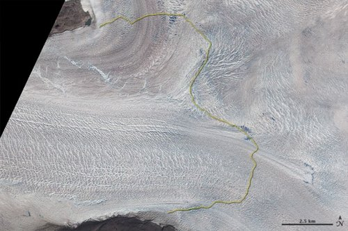 7月14日拍攝衛(wèi)星照片顯示Jakonbshavn冰川一夜間消退1英里(約1.6公里)