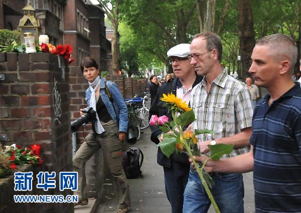 7月25日,在德國(guó)杜伊斯堡,當(dāng)?shù)孛癖娫诓忍な录l(fā)生地附近為遇難者獻(xiàn)花。新華社記者胡小兵攝