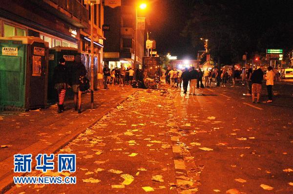 7月25日凌晨,在德國西部杜伊斯堡,踩踏事件發(fā)生數(shù)小時后,該市中央火車站前的大街上一片狼籍。新華社記者 胡小兵 攝