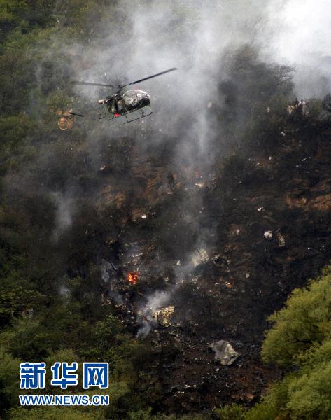 7月28日,在巴基斯坦伊斯蘭堡附近的默爾加拉山,墜機(jī)事故現(xiàn)場(chǎng)濃煙滾滾。新華社/路透