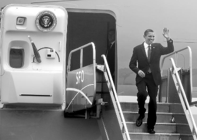 奧巴馬抵達(dá)舊金山,出席民主黨參議員的選舉籌款活動。