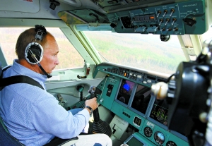 8月10日,俄總理普京坐在一架直升機副駕駛座上參與滅火。