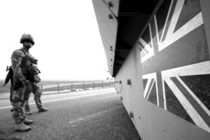 題圖: 在巴士拉港口巡邏的美軍士兵。