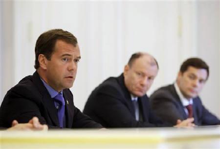 梅德韋杰夫當(dāng)天召集企業(yè)界大亨們來(lái)到他在索契的黑海夏季寓所,這些大亨包括全球最大鋁業(yè)公司俄羅斯鋁業(yè)老板歐柏嘉,以及鎳礦集團(tuán)的大股東波塔寧。