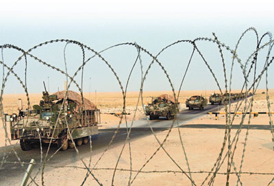 美軍車隊(duì)越過(guò)伊拉克邊境進(jìn)入科威特境內(nèi)