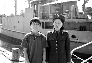 8月16日,朝鮮,13歲的美國男孩喬納森·李(左)與一名朝鮮女兵(右)合影。