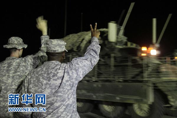 8月19日凌晨,2名美軍士兵向正在跨越伊拉克與科威特的邊境線撤離的美軍部隊(duì)揮手。美國媒體18日晚報(bào)道,最后一批駐伊美軍戰(zhàn)斗部隊(duì)已跨越伊拉克與科威特的邊境,美國完成了在8月31日前從伊拉克撤出戰(zhàn)斗部隊(duì)的計(jì)劃。 新華社/美聯(lián)