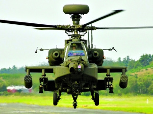 AH-64D,機(jī)長(zhǎng):15米 機(jī)高:3.8米;旋翼直徑:14.6米;最大速度:293公里/小時(shí);作戰(zhàn)半徑:480公里