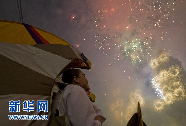 2010年9月16日,墨西哥城:五光十色歡樂夜。 9月15日,在墨西哥首都墨西哥城憲法廣場舉行的慶祝墨西哥獨立200周年的歡慶儀式上,焰火點亮夜空。新華社記者 戴維攝