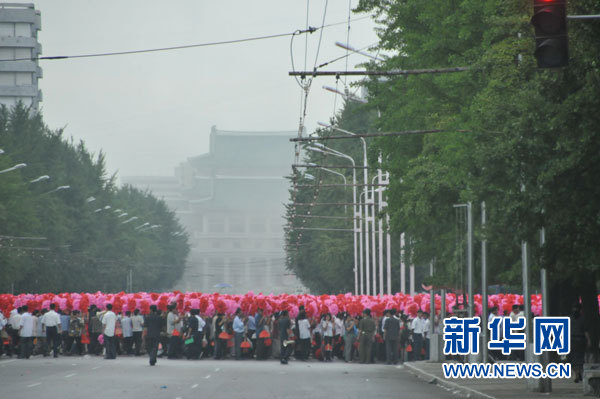 資料圖片:9月5日,在朝鮮首都平壤,市民們參加勞動黨代表會議召開慶祝活動的演練。新華社記者高浩榮攝