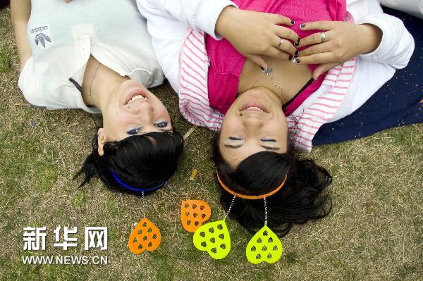 9月21日,在阿根廷首都布宜諾斯艾利斯,兩個女孩躺在草地上。 新華社發(fā)(馬丁·薩巴拉攝)