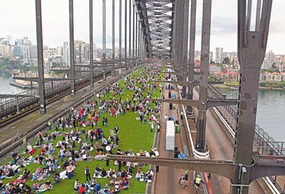 悉尼大橋草皮坐滿開餐民眾。