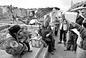 10日,吉爾吉斯斯坦奧什,一名烏茲別克族婦女在自己被毀壞的房屋前投票。當(dāng)天,該國實(shí)行議會(huì)民主制后舉行首次議會(huì)選舉。6月,該國吉爾吉斯族和烏茲別克族間曾暴發(fā)民族沖突。