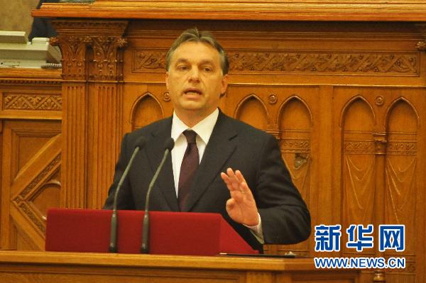 10月11日,在匈牙利首都布達佩斯,匈牙利總理歐爾班在國會會議上講話。新華社發(fā)(托爾科·道尼攝)