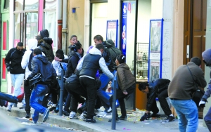 20日,里昂,罷工工人搶劫商店。
