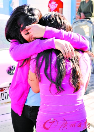 23日,兩名華雷斯居民在為鄰居家發(fā)生的慘案哭泣。