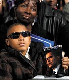 10月30日,在芝加哥市,一名美國兒童手持總統(tǒng)奧巴馬的傳記聆聽奧巴馬演講。新華社/路透