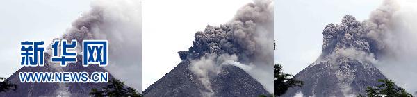 這張拼版照片顯示的是11月1日拍攝的正在噴發(fā)的印度尼西亞中爪哇省默拉皮火山。當(dāng)天上午,位于印度尼西亞中爪哇省的默拉皮火山再度噴發(fā)熾熱煙灰;鹕交腋叨瘸^1000米,并向南飄飛4公里遠(yuǎn)。目前尚無人員傷亡和財產(chǎn)損失的報道。新華社記者張玉薇攝