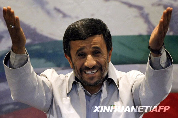 這是2009年6月14日艾哈邁迪-內(nèi)賈德在伊朗首都德黑蘭出席記者會的資料照片。 新華社/法新