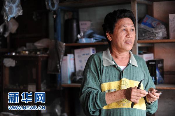 11月4日,在印尼北巴蓋島的希卡卡普村,華人李沖天在商店內(nèi)講述自己的故事。印度尼西亞明打威群島海嘯已經(jīng)造成至少450人死亡,其中至少3人是印尼華人。 新華社記者金良快攝