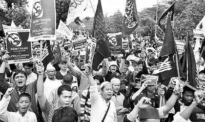 雅加達(dá)民眾抗議奧巴馬到訪。