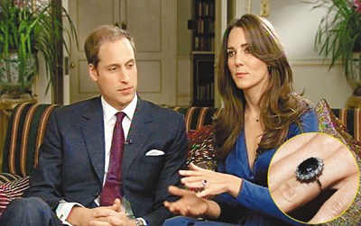 威廉王子與凱蒂向傳媒講述情路往事,凱蒂戴著戴妃的戒指。