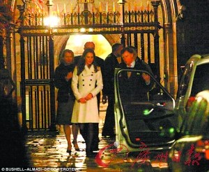 當?shù)貢r間17日深夜,剛剛宣布訂婚消息的米德爾頓在保安的陪同下出現(xiàn)在威斯敏斯特教堂。