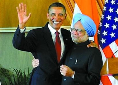 奧巴馬與辛格擁抱得格外親熱